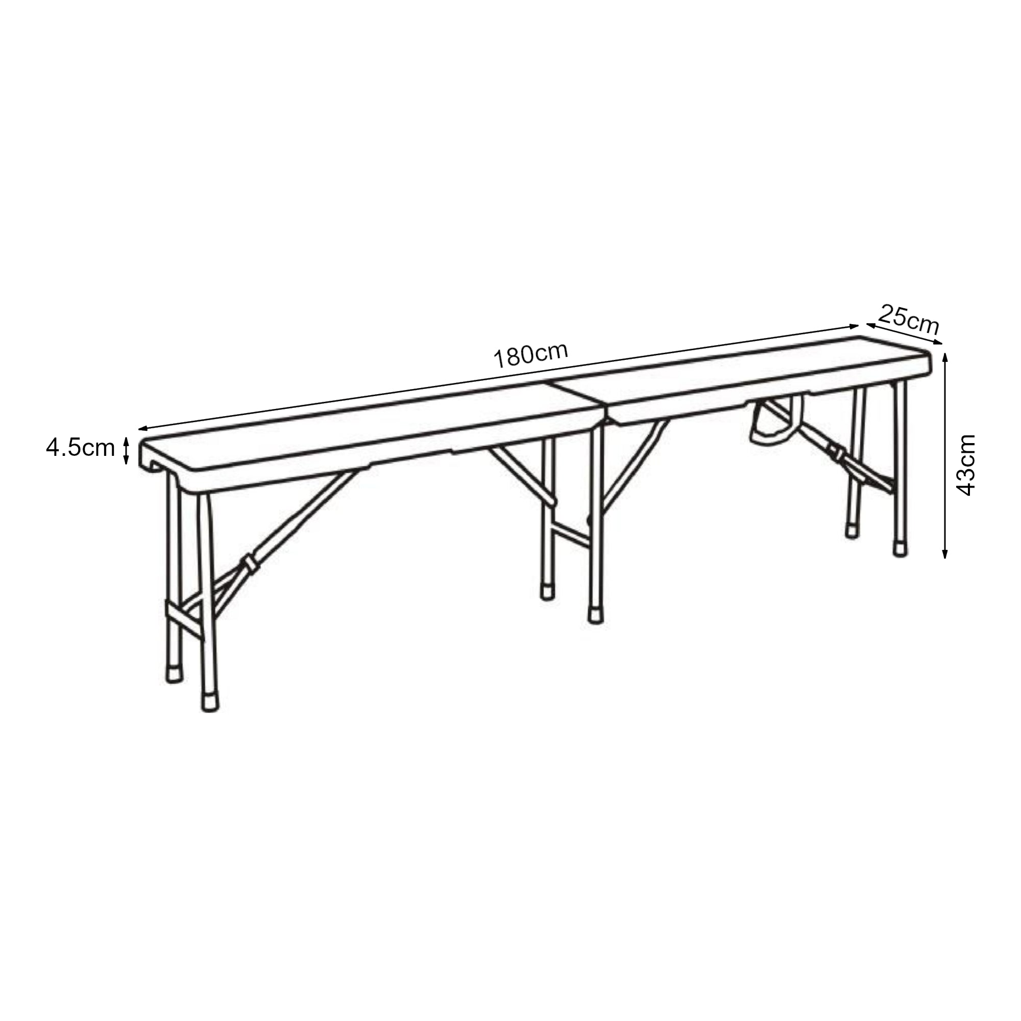 Total (längd x bredd x höjd): 180 x 25 x 43 cm