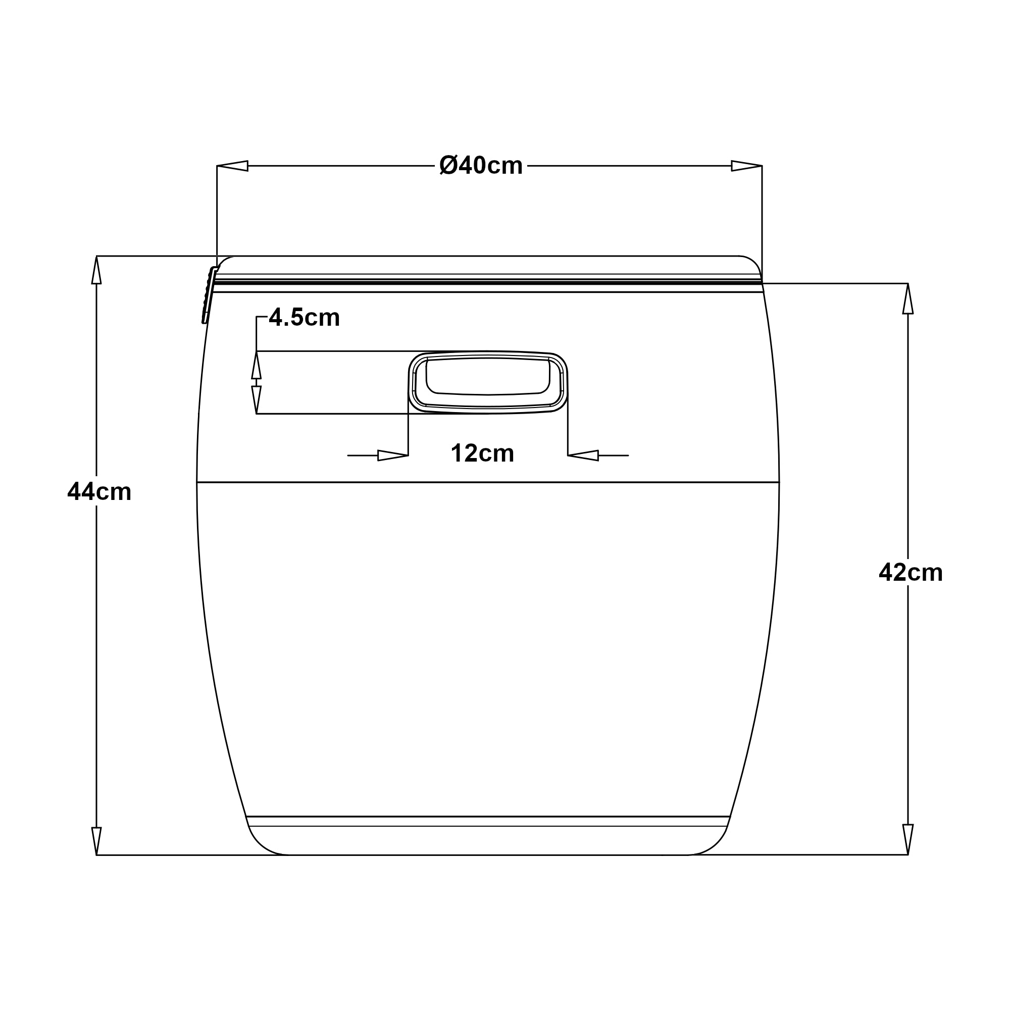 - Total (HxØ): 44 x 40 cm