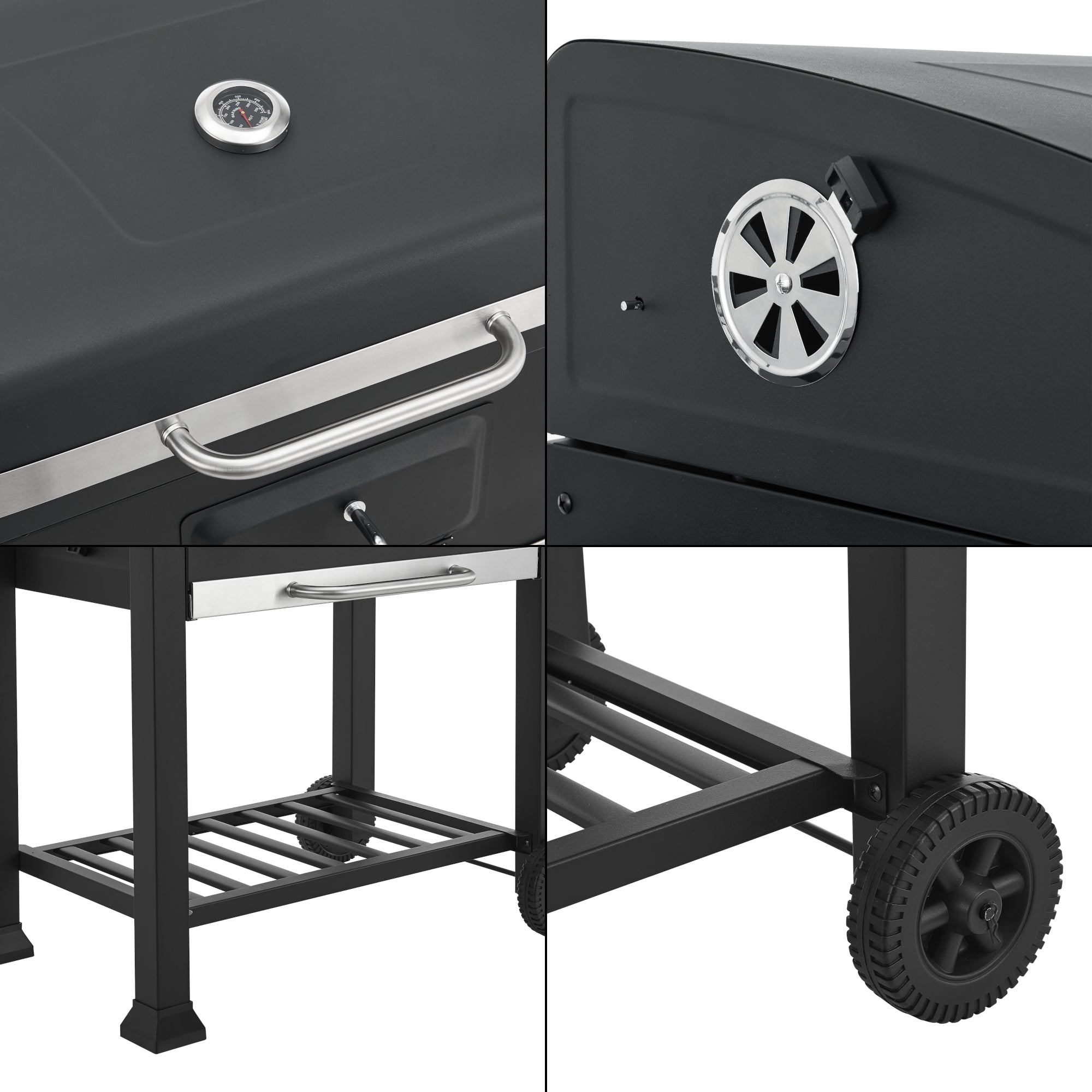 Den generösa grillytan med ett extra grillgaller gör det enkelt att grilla för ett stort antal gäster. De två hjulen gör det enkelt att flytta grillen från plats till plats - perfekt för trädgårdsfester eller familjesammankomster.