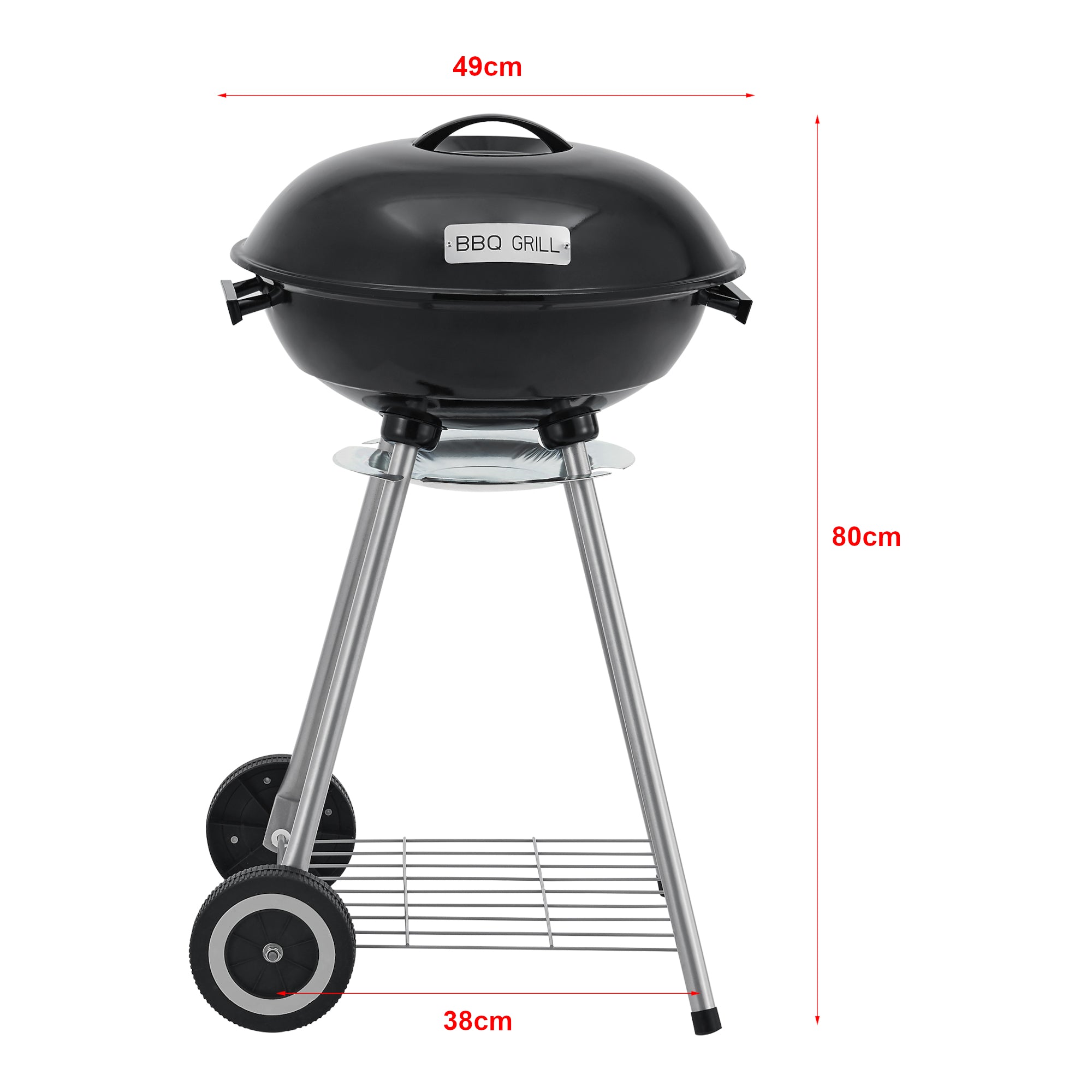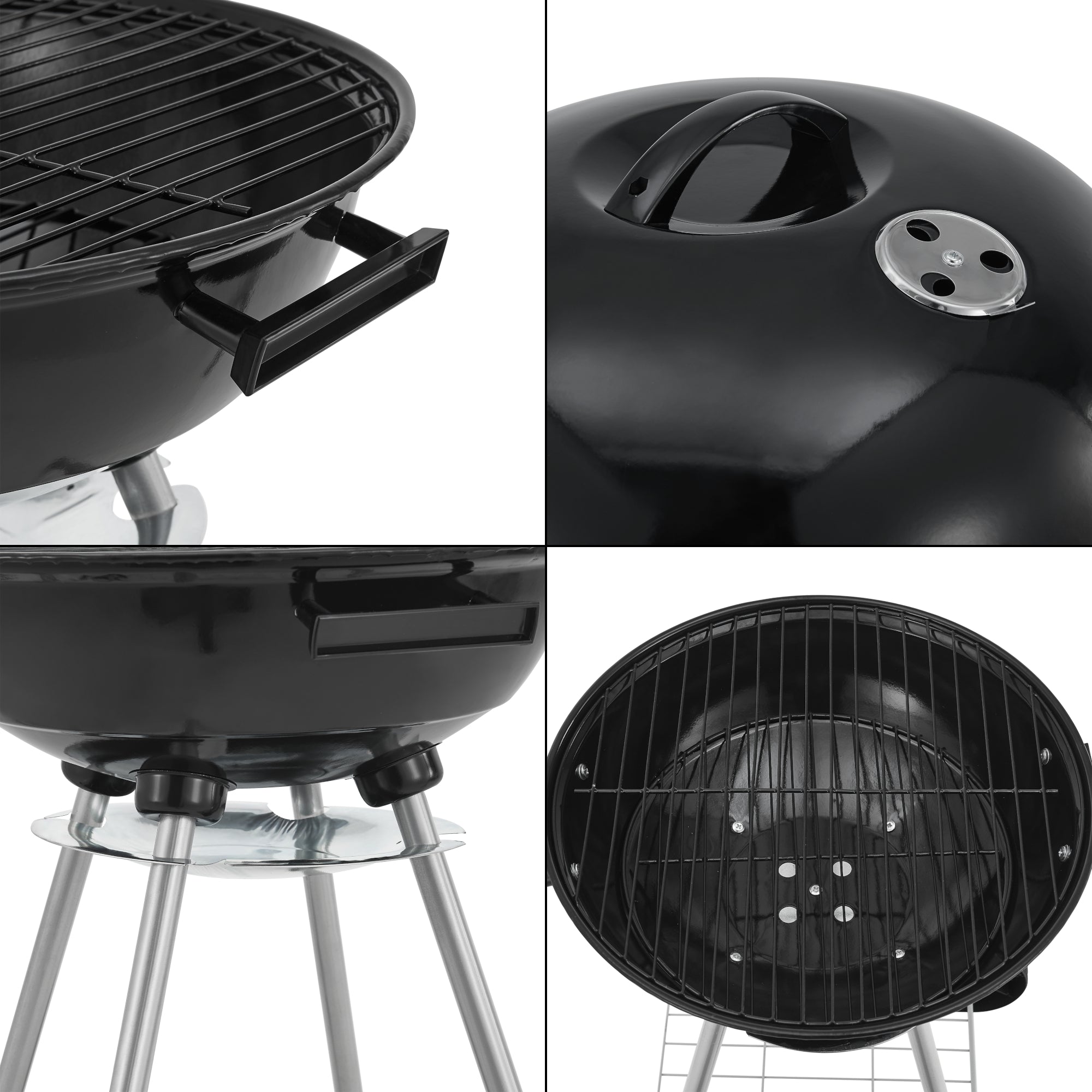 Det emaljerade grillgallret i rostfritt stål är perfekt för grillning i små grupper och gör det till ett nöje att bjuda dina gäster på perfekt tillagad mat. Det avtagbara locket håller maten varm, medan den nedre hyllan ger förvaringsutrymme för grillkol och andra tillbehör.