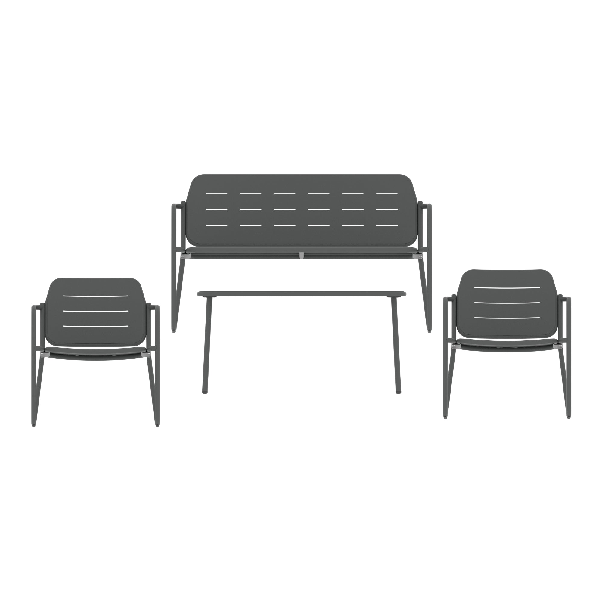 Detta mångsidiga utomhusmöbelset är en oumbärlig ensemble för olika aktiviteter utomhus. Det är idealiskt för mysiga sammankomster i trädgården, skapar en inbjudande atmosfär på terrassen eller fungerar som en praktisk avlastnings- och sittplats på balkongen.
