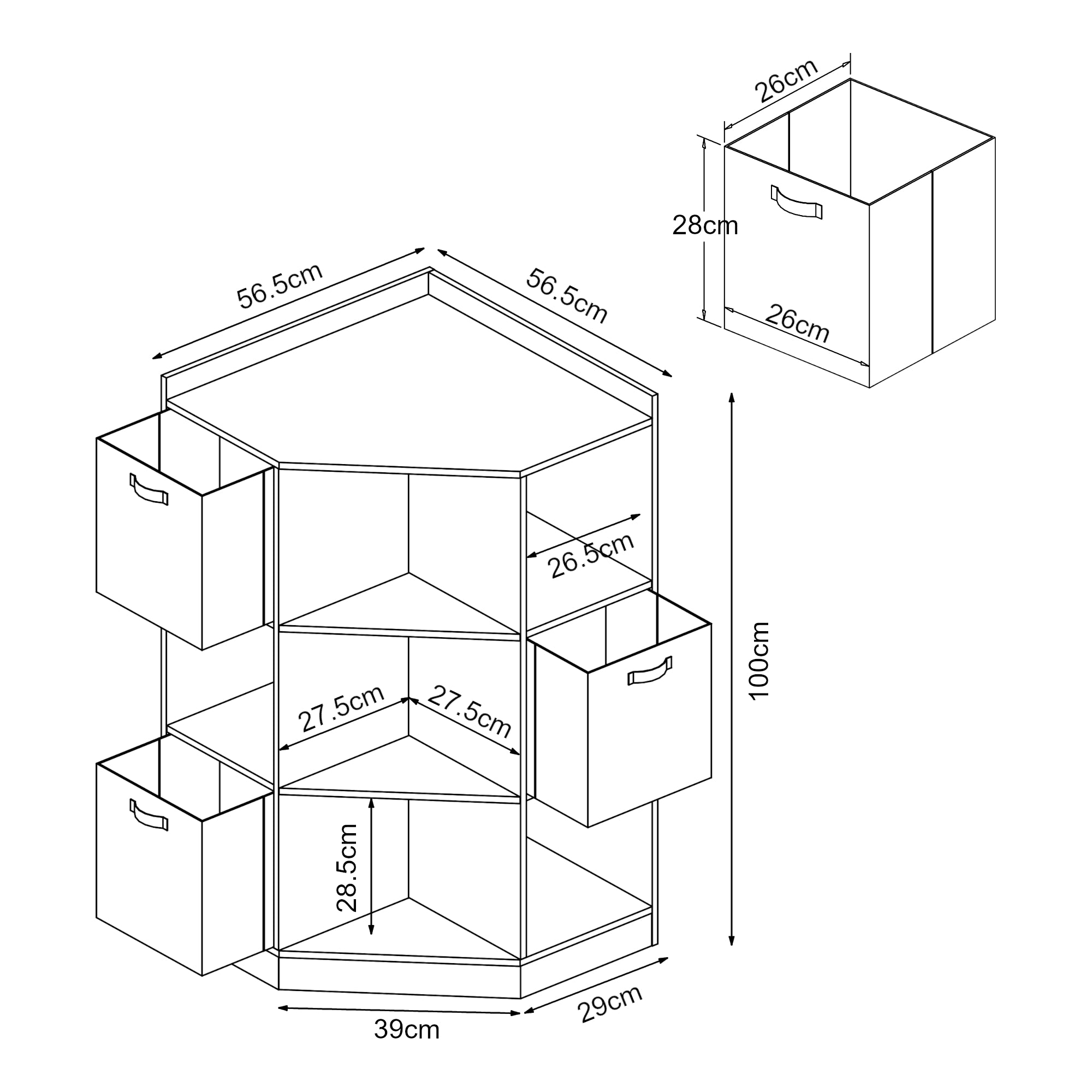 - Total (HxBxD): 100 x 56,5 x 56,5 cm