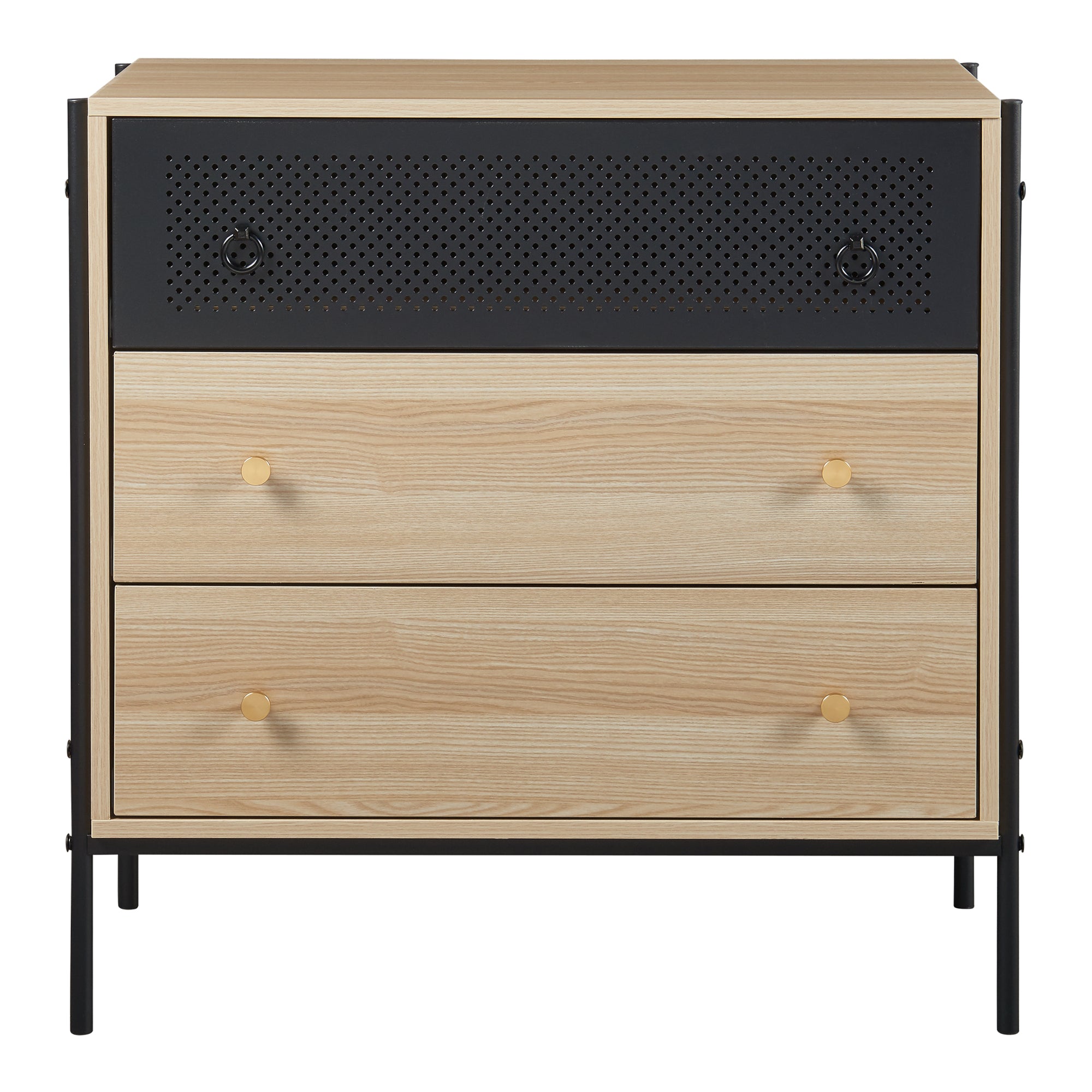Utrustad med tre lådor erbjuder denna byrå gott om plats för att förvara alla föremål prydligt och lättillgängligt. Lådorna är rymliga och möjliggör en strukturerad förvaring av kläder, accessoarer och andra hushållsartiklar.