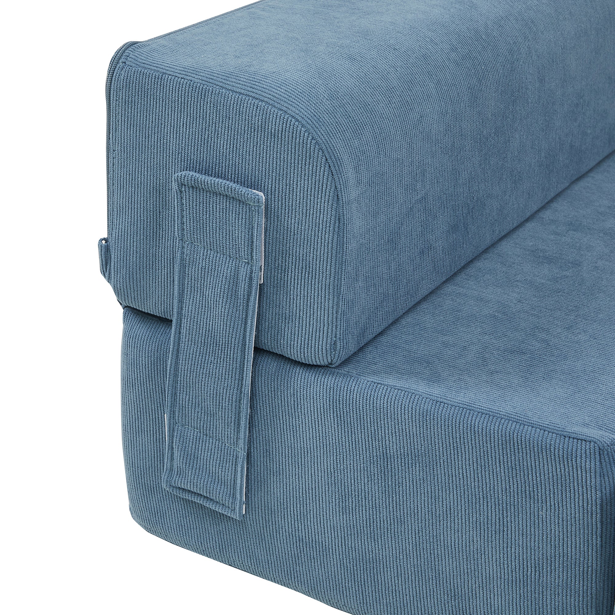 Två av de fyra delarna har en behagligt rundad framkant som både ger extra komfort och en mjukare estetik. I trappkonfigurationen fungerar de som översta och nedersta steg med ergonomisk avslutning – i liggvarianten kan de användas perfekt som huvud- eller fotdel.