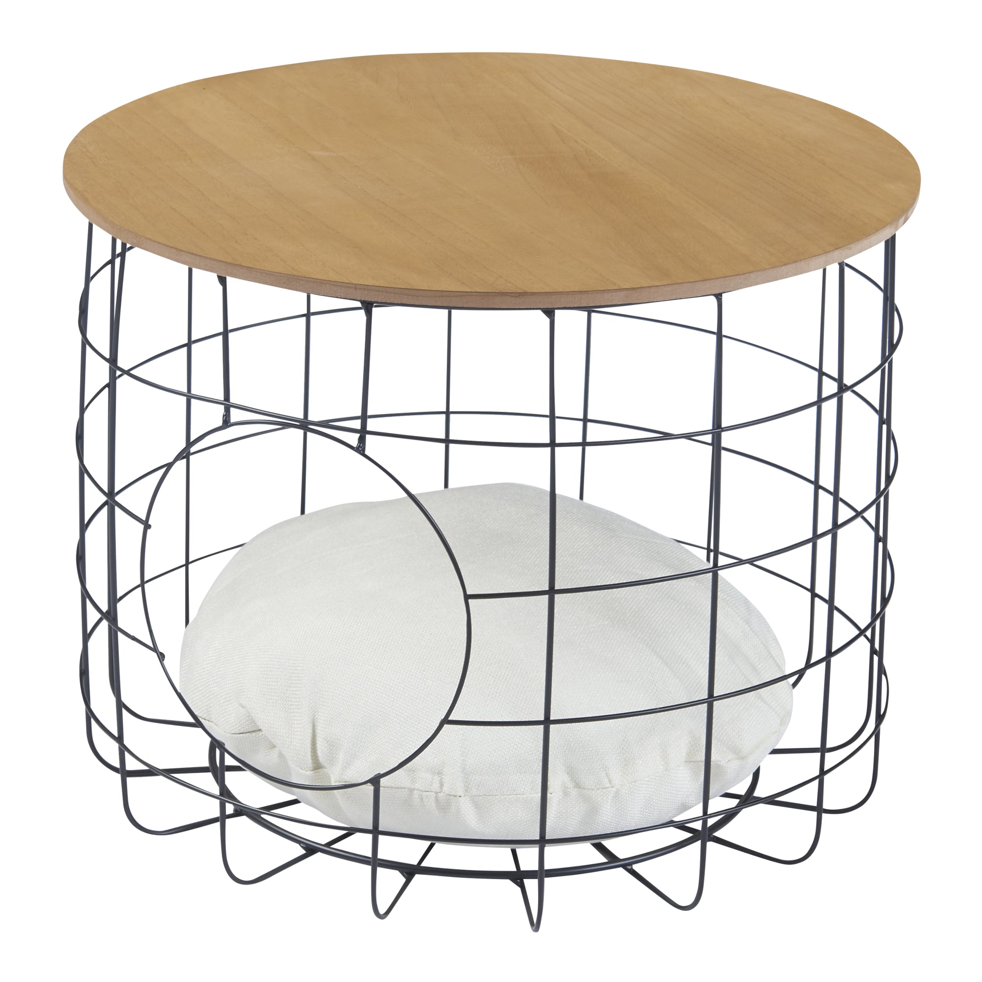 Dessa ovanliga metallkorgar kan användas på många olika sätt. Med sin tidlösa design passar de perfekt in i till exempel vardagsrummet. De kan inte bara användas som sidobord, utan också som en kattgrotta. Hålet i sidan fungerar som en ingång för ditt husdjur. Dessutom inbjuder de mysiga kuddarna din katt att lägga sig ner och koppla av.