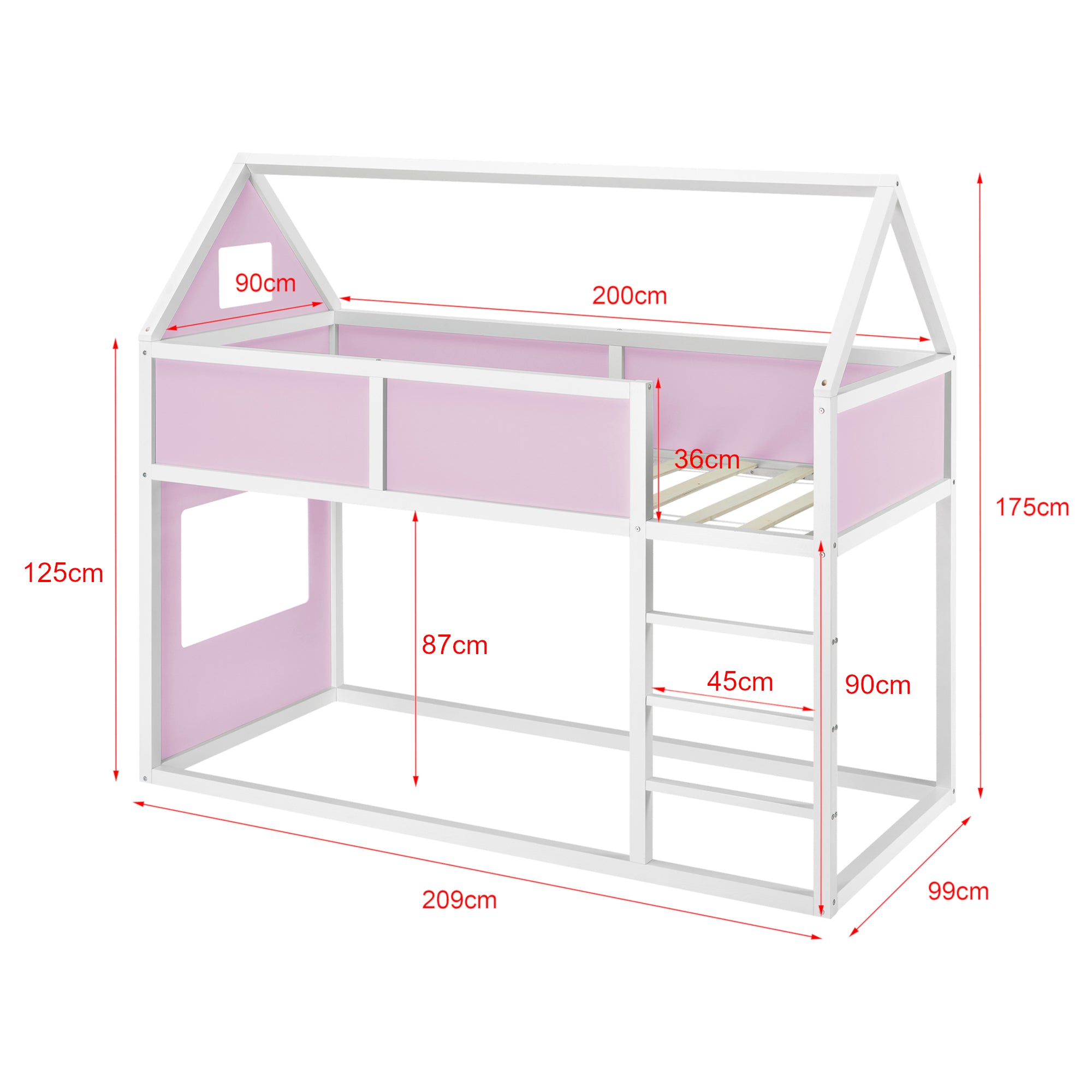 [en.casa]® Våningssängstomme Wilma i "Hus" utförande inkl. ribbotten-209x99x175cm-furu-bäddmått:200x90cm-i olika färger