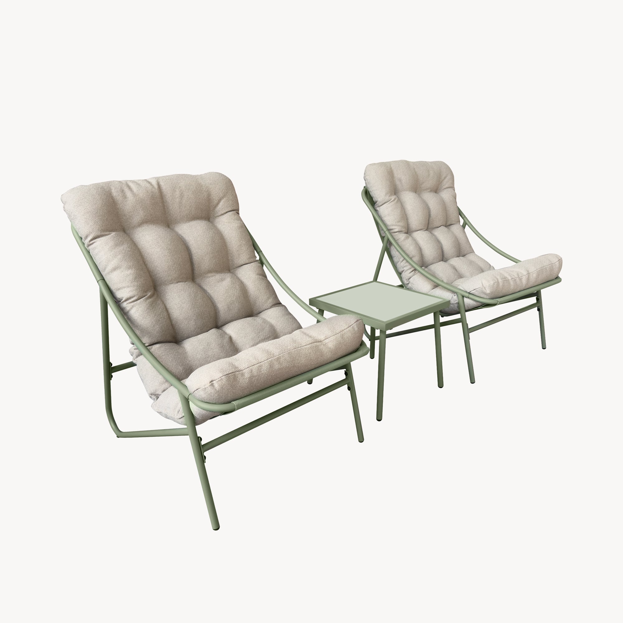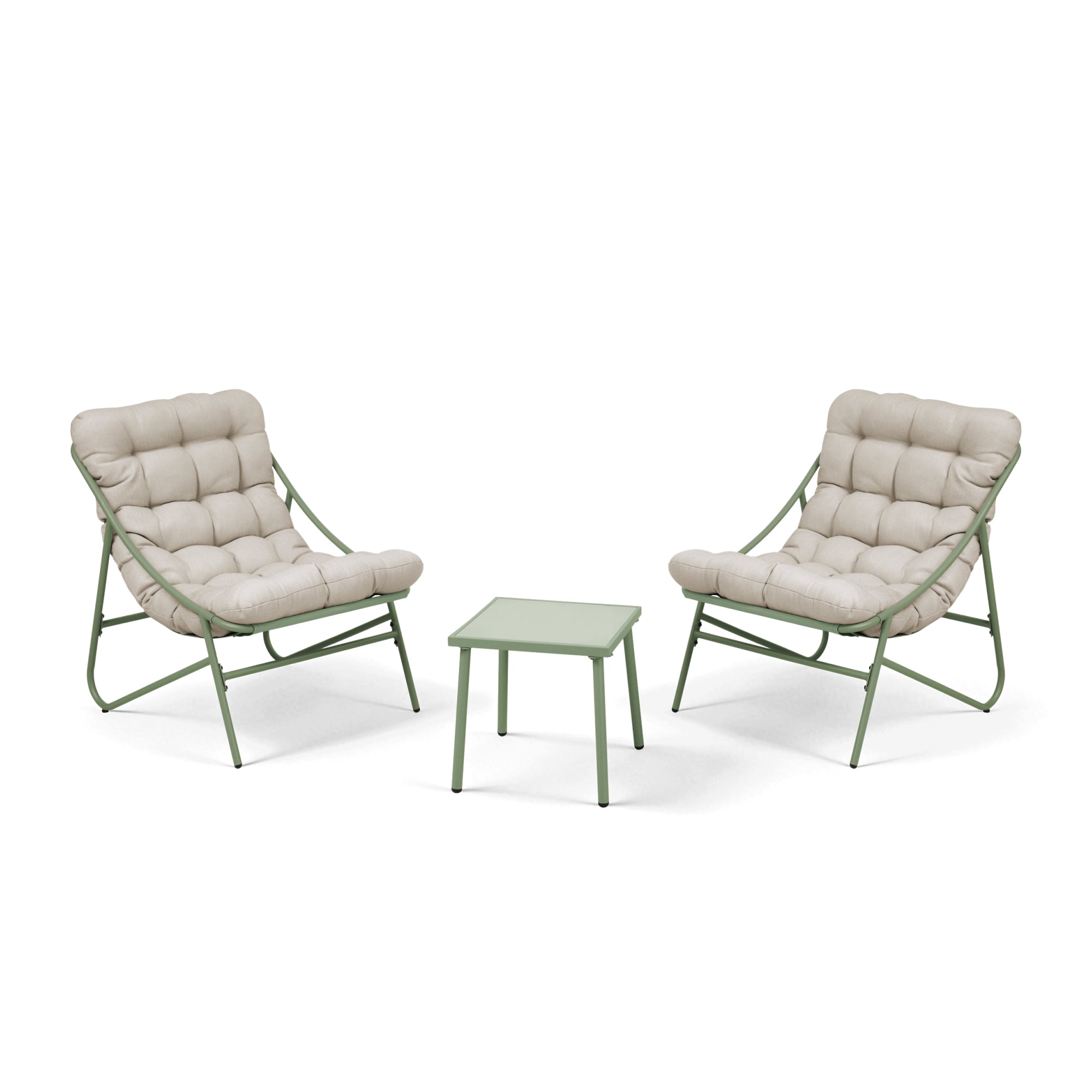 Det tredelade utomhussetet är idealiskt för trädgård, terrass eller balkong och möjliggör avkopplande stunder utomhus. Med två bekväma loungestolar och ett praktiskt sidobord skapas en harmoniskt sammansatt ensemble för mysiga ögonblick.
