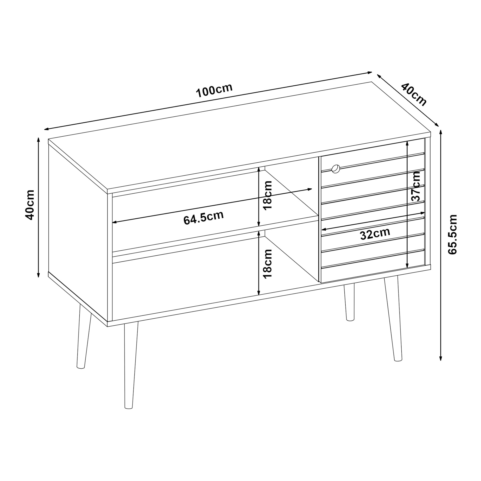 Total (längd x bredd x höjd): 100 x 40 x 65,5 cm